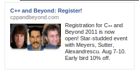 C++ and Beyond 2011: Registration is now open Herb Sutter 2011-03-26 Published by Herb Sutter Herb Sutter is an author and speaker, a software architect at Microsoft, and chair of the ISO C++ standards committee. View all posts by Herb Sutter Published 2011-03-26