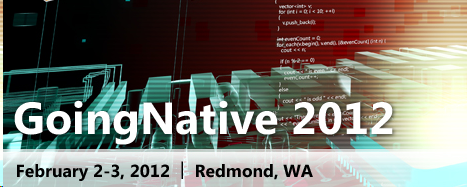 - GoingNative 2012 is a global live C++11-fest that kicks off this Thursday at 9:30am U.S. Pacific time.