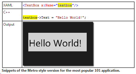 Windows 8 support, including Metro-style tablet apps on x86 and ARM. A major engineering change like Windows 8 comes along about once a decade, so with C++/CX and WRL we did a huge amount of work to ensure that VC++ gets great compiler and tool support for writing Windows 8 apps, while writing the minimum quantity of non-ISO standard code on the boundaries with the Windows environment (usually just ^ and ref new, similar to C++/CLI; the vast majority of your code should remain portable C++). And we wanted to make sure that VC++ is a first-class language that is visibly clean, safe, and fast – just as clean and safe in side-by-side code examples with Javascript and .NET CLR (e.g., you can write a XAML UI equally easily on top of any of these language projections), and with C++’s traditional power and performance (e.g., VC++ also supports creating tablet DirectX games and other graphics-intensive apps). Oh, and we brought up a whole new processor architecture: ARM.