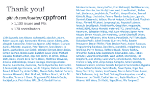cppfront-thanks-2024-07 Herb Sutter 2024-07-28 Published by Herb Sutter Herb Sutter is an author and speaker, a software architect at Microsoft, and chair of the ISO C++ standards committee. View all posts by Herb Sutter Published 2024-07-28